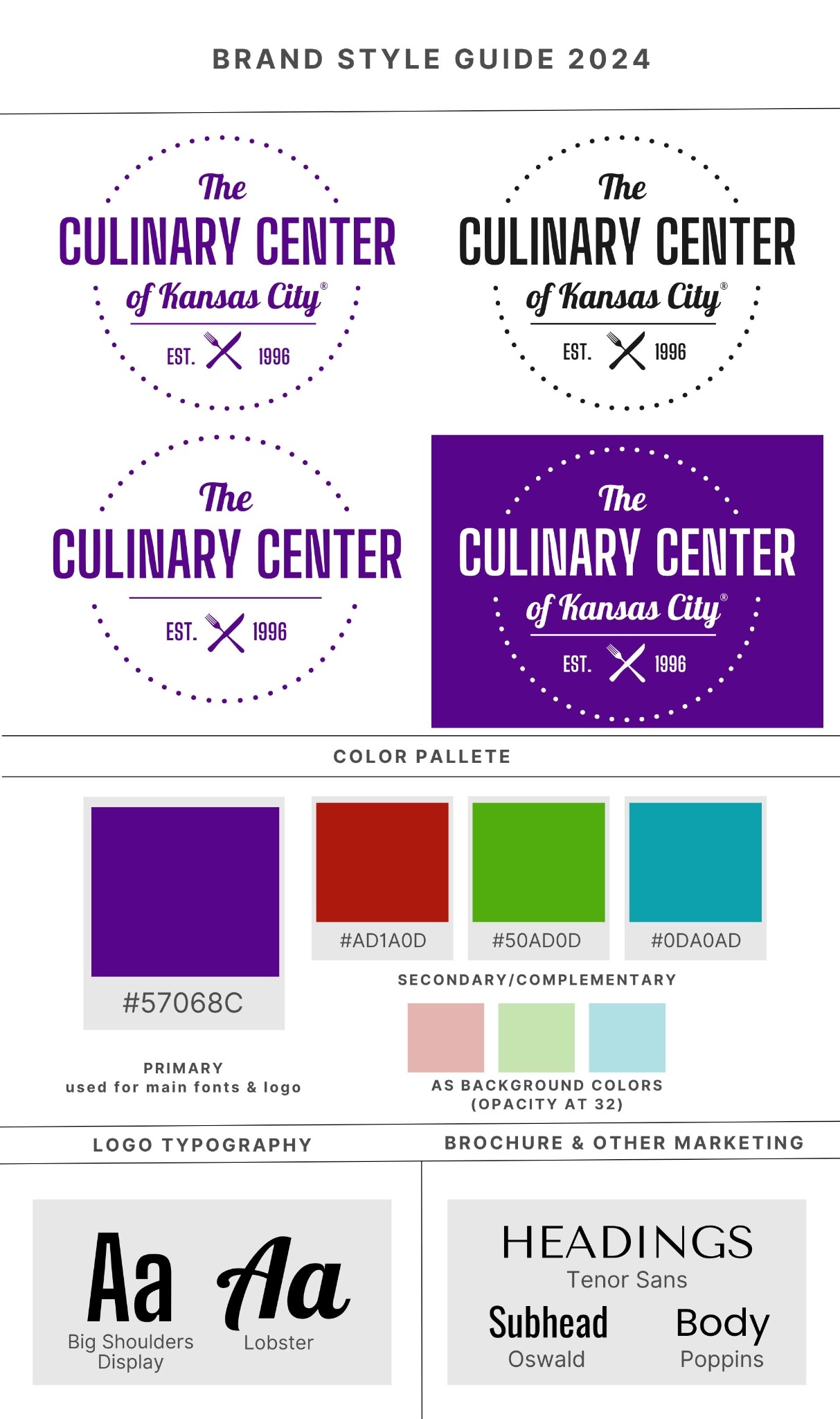 When CCKC came under new ownership in 2023, I took on the role of revamping their logo and design elements and creating an official brand kit. Along with this, I designed additional creative materials like business cards, thank you notes, event brochures and menus.
