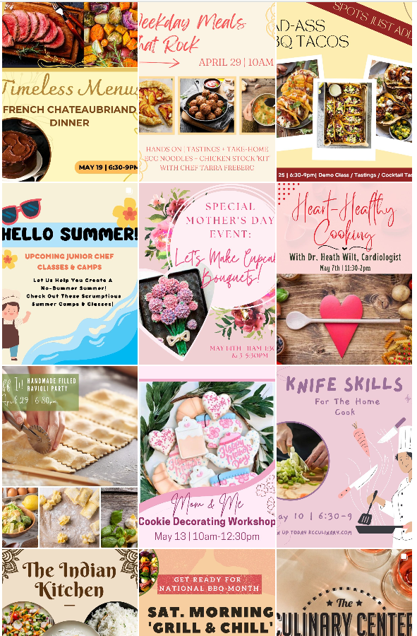 From August 2022 to November 2023, I was responsible for designing and scheduling social media content promoting upcoming cooking classes via Instagram, Facebook and in-house digital screens displays. I also crafted weekly emails advertising upcoming classes to their subscriber list using Hubspot.